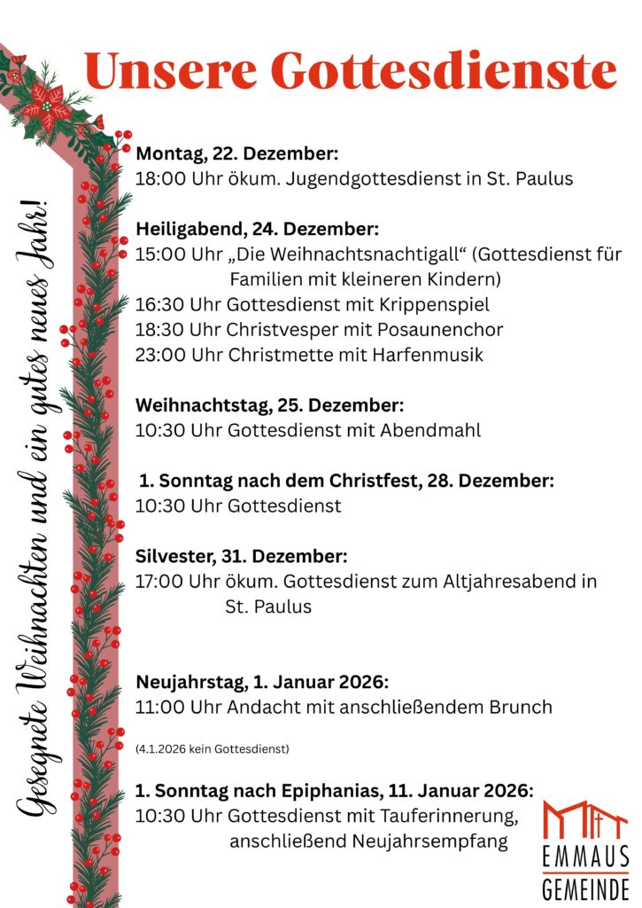 Hier finden Sie alle unsere Gottesdienste in der Weihnachtszeit: